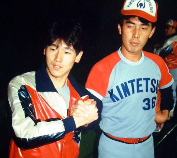吉井(右)には何度も試合を締めくくってもらったが(左は筆者)/(C)日刊ゲンダイ