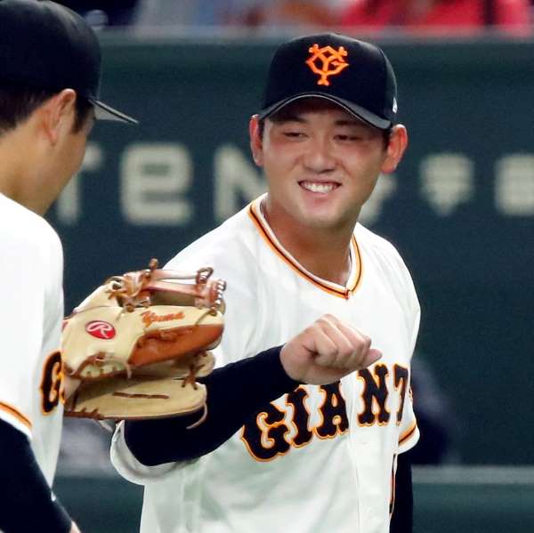 プロ初勝利を挙げた平内龍太投手 6回に好守備を見せた岡本和真とタッチ(C)日刊ゲンダイ