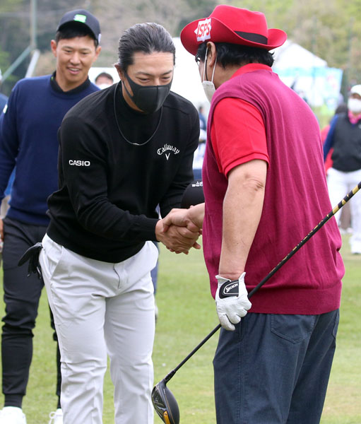 半田会長に一連の無礼をわびる石川遼(C)日刊ゲンダイ