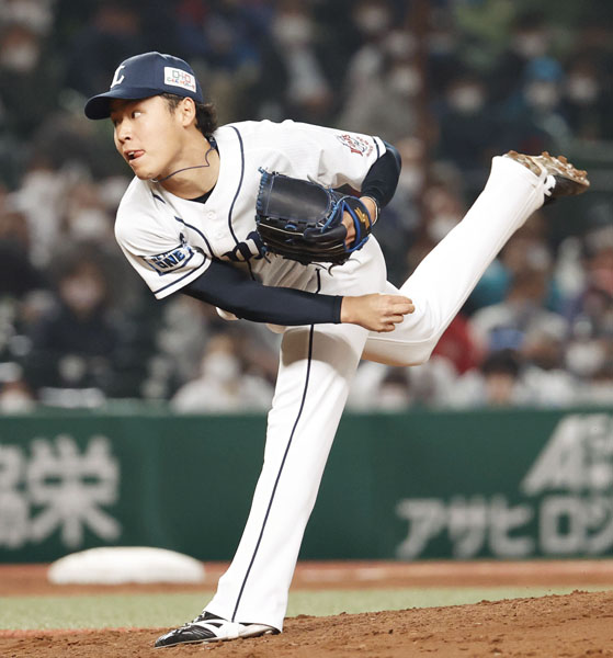 プロ初勝利を上げた西武の水上由伸(C)共同通信社