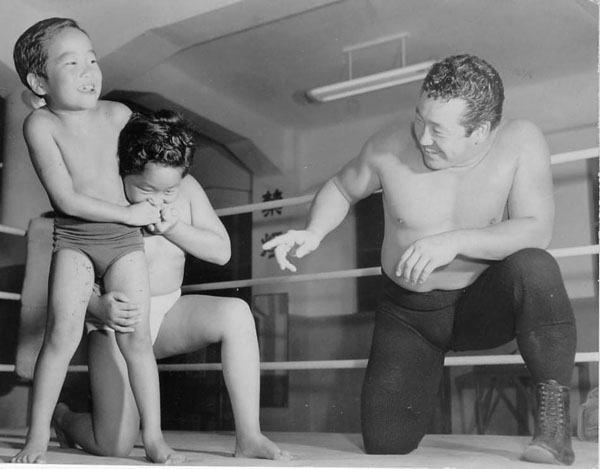 力道山(右)と幼い頃の百田光雄さん(左)/(C)リキエンタープライズ