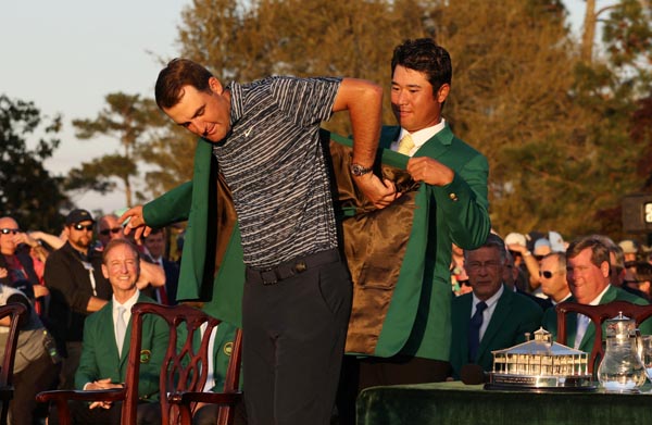 優勝セレモニーに登場した前年覇者の松山(C)ロイター