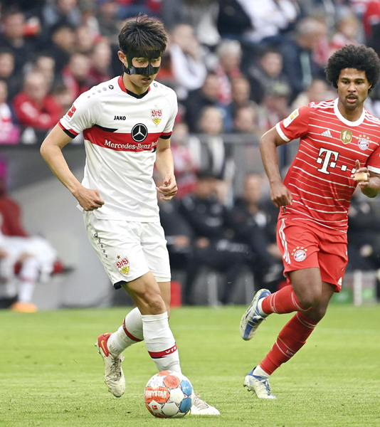 バイエルン・ミュンヘン戦でプレーする伊藤(C)共同通信社