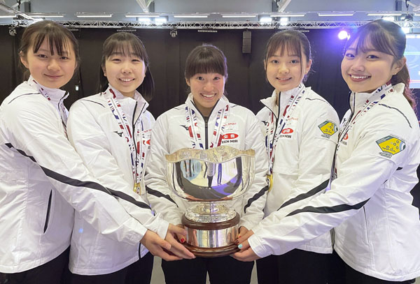 左から上野結生、三浦由唯菜、山本冴、上野美優、荻原詠理(日本カーリング協会提供)
