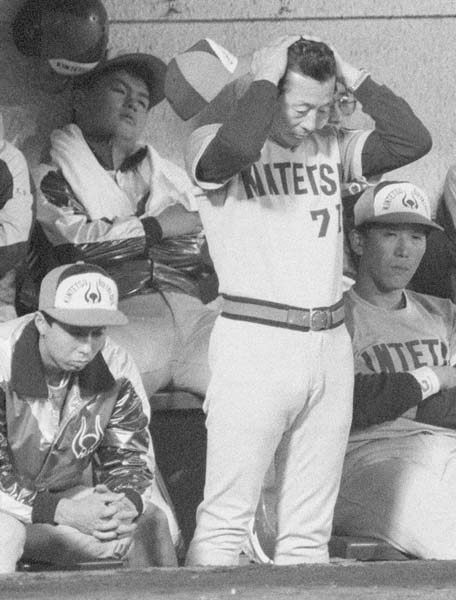 優勝の可能性が消え、ガックリの近鉄ベンチ(C)共同通信社