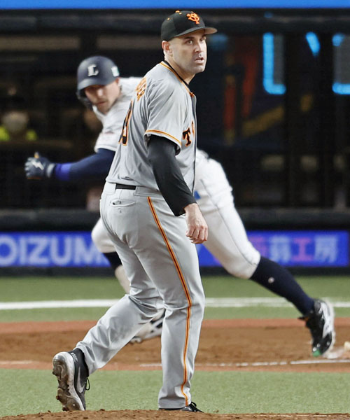 四回、オグレディ(後方)に先制打を許し、4敗目となったシューメーカー(C)共同通信社