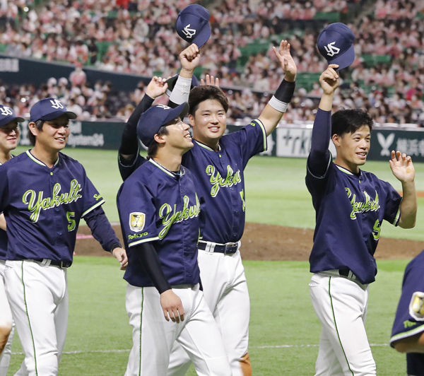 交流戦Vを喜ぶ村上(央)らヤクルトナイン(C)共同通信社