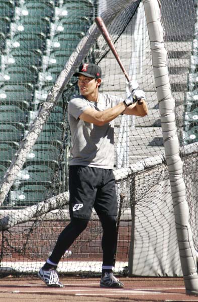 パドレス傘下3Aエルパソの本拠地球場で打撃練習をする秋山(C)共同通信社
