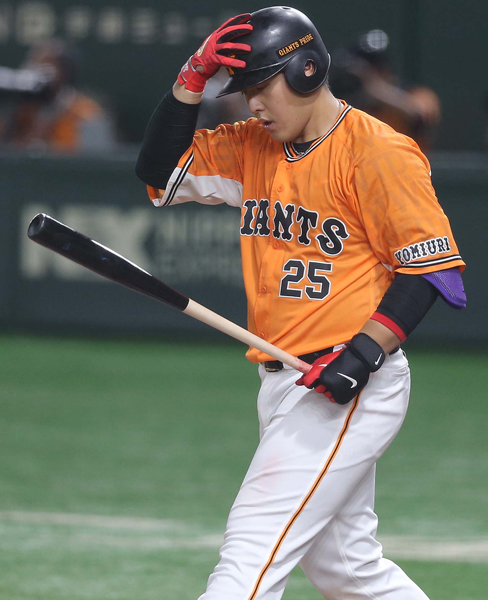 三振に倒れ、うつむく主砲の岡本和(C)日刊ゲンダイ