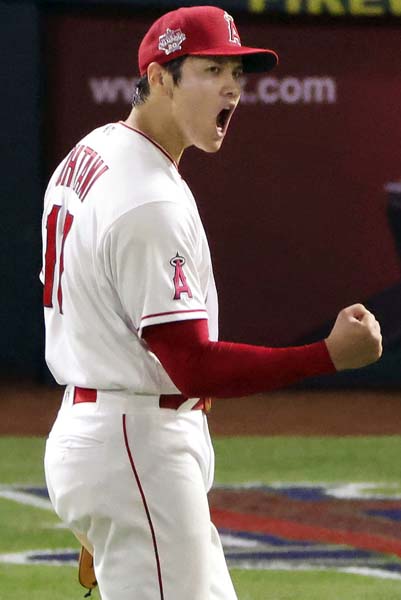 この日はガッツポーズも飛び出した(大谷)(C)共同通信社