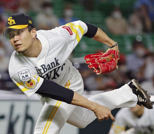 24日の日本ハム戦に先発したソフトバンクの千賀滉大(C)共同通信社