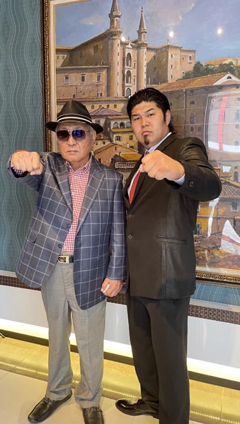 山根会長(左)とWYBC世界ヘビー級王者の高橋知哉氏(提供写真)