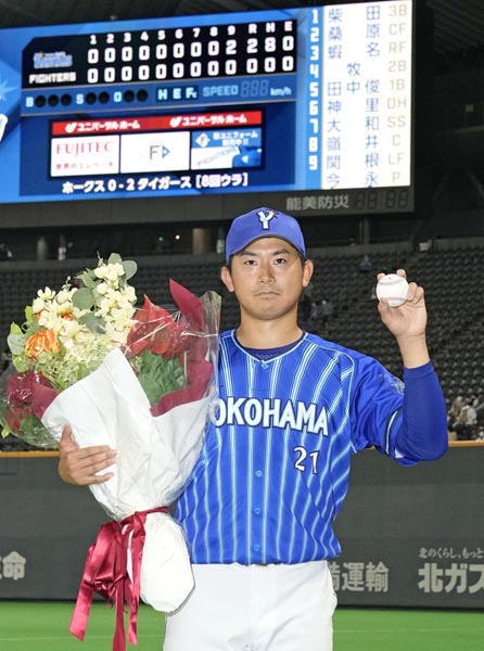 淡々と記念撮影に応じる今永(C)共同通信社