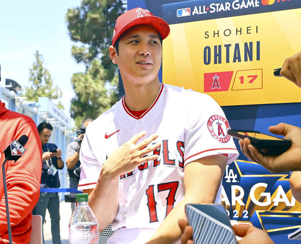 球宴前日会見で「(WBCで)プレーしたい」と、大谷翔平(C)共同通信社