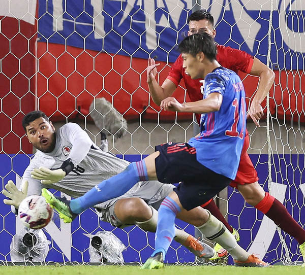 日本―香港戦の後半、自身2点目のゴールを決める町野(C)共同通信社