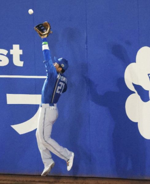 七回に牧のフェンス直撃かという大飛球をジャンピングキャッチ(C)共同通信社