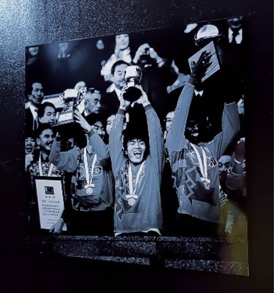 オフィスには名良橋と中田のゴールで勝ち取った1995年アジアカップウイナーズの写真が(写真)佐々木裕介