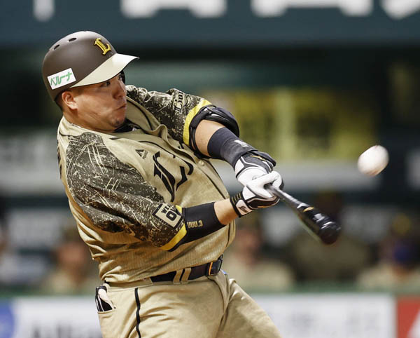 4回、山川が左越えに勝ち越し3ランを放つ(C)共同通信社