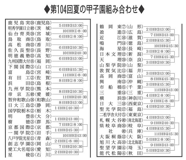 第104回夏の甲子園組み合わせ(C)日刊ゲンダイ