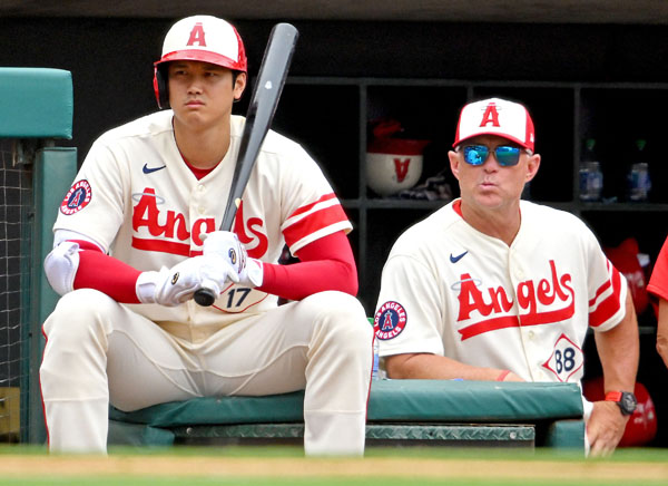 ネビン監督代行(右)も大谷の「手腕」に期待を寄せている(C)ロイター/USA TODAY Sports