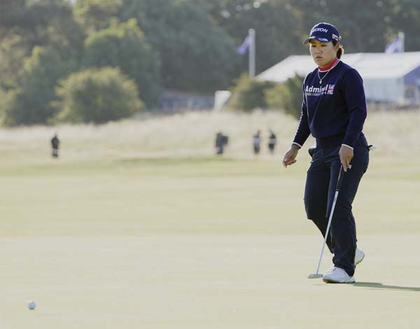 グリーンの複雑な傾斜に翻弄された畑岡(C)共同通信社