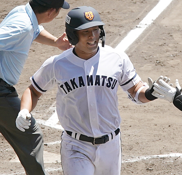 2本目の本塁打を放って笑顔の高松商・浅野(C)日刊ゲンダイ