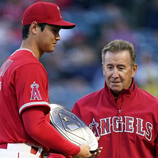 5月のMVP表彰式でモレノ・オーナーと大谷(C)ロイター/USA TODAY Sports