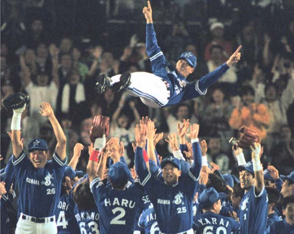 DeNAの優勝は1998年が最後(38年ぶりのセ・リーグ優勝に輝き、ナインに胴上げされる横浜・権藤監督)/(C)共同通信社