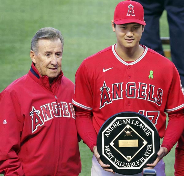 身売りを公表したモレノオーナーと大谷(C)共同通信社