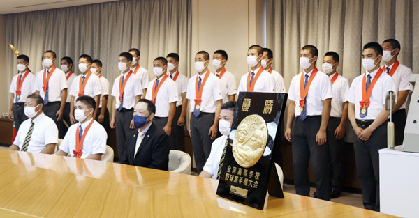 5日、東北勢初の甲子園優勝報告で宮城県庁を表敬訪問した仙台育英ナイン(C)共同通信社