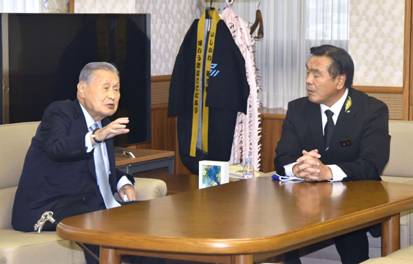 馳知事とにこやかに談笑(C)共同通信社