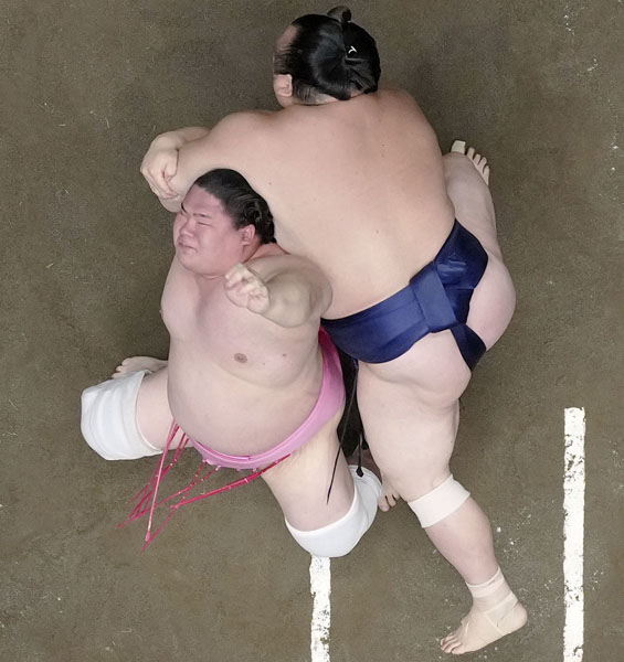 珍手・伝え返しを繰り出した宇良(C)共同通信社