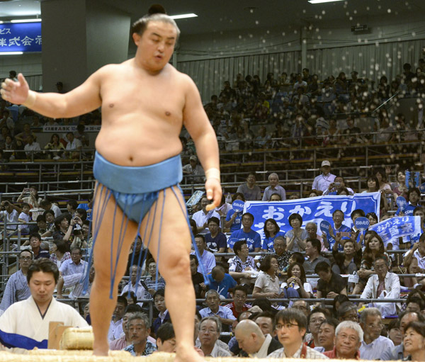 ファンも歓迎した蒼国来の土俵復帰(C)共同通信社