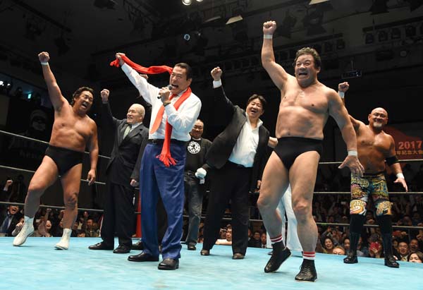 藤波辰爾45周年記念興行で(C)山内猛/共同通信イメージズ