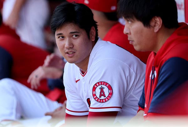 守備の間、ベンチに座っているのは大谷のマイナス評価に(C)ロイター/USA TODAY Sports