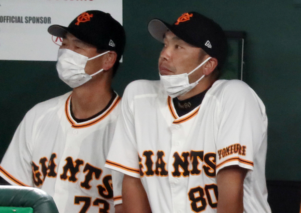 再来年2024年の監督有力候補・阿部コーチ(右)。左は桑田コーチ(C)日刊ゲンダイ