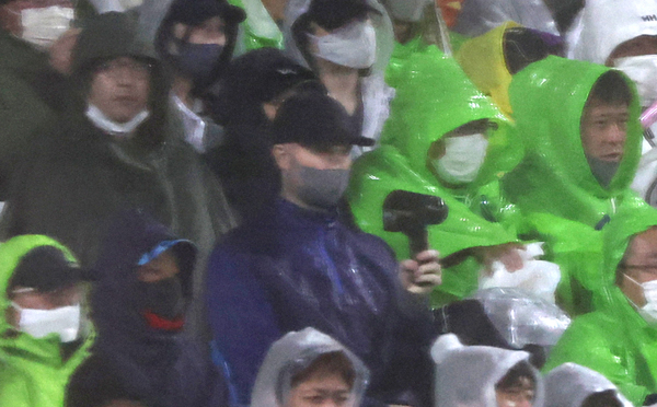 雨中の登板となった藤浪(C)日刊ゲンダイ