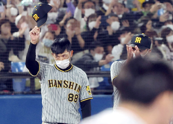 ヤクルトに3連敗でスタンドのファンに別れを告げる矢野監督(C)日刊ゲンダイ