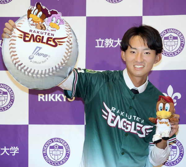 楽天の1位位指名に喜ぶ荘司(C)共同通信社