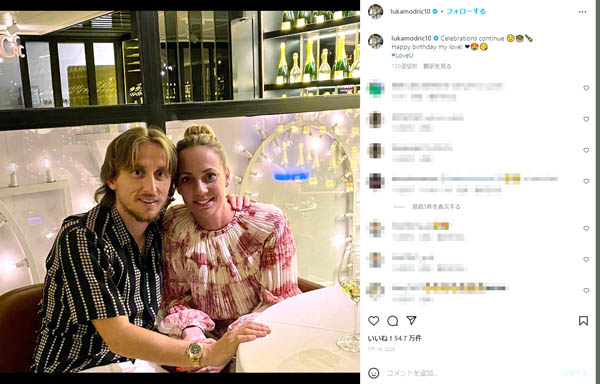 ルカ・モドリッチと妻のバニャ・ボスニッチ(本人のインスタグラムから)