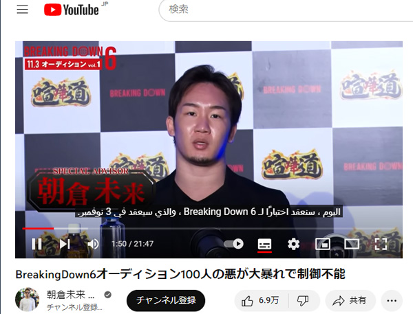 (朝倉未来YouTubeチャンネルから)