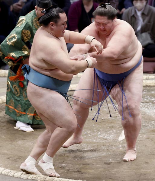 暴行疑惑の逸ノ城(右)は玉鷲に勝利(C)共同通信社