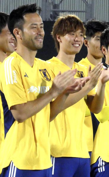 穏やかな表情の板倉(右)と吉田(C)元川悦子
