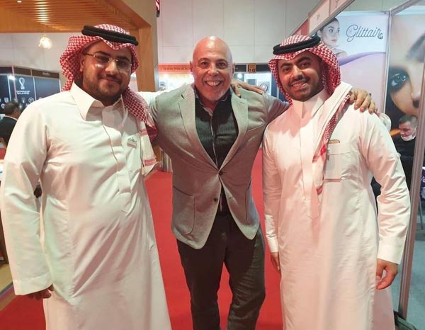 左からサウジアラビアサッカー協会幹部、筆者、W杯組織委員会の広報部(提供写真)