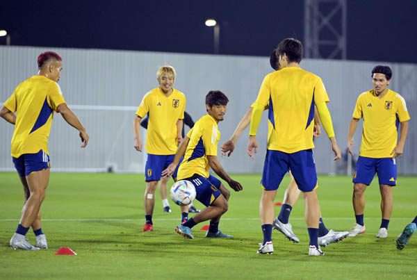 前日練習でパスを回す日本代表(C)JMPA