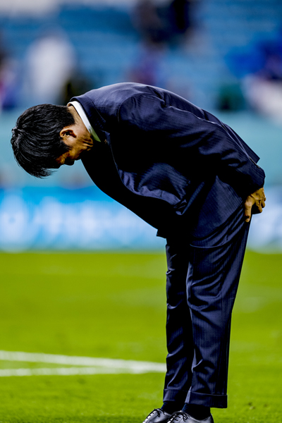 試合後、日本サポーターに深々と頭を下げる森保監督(C)JMPA