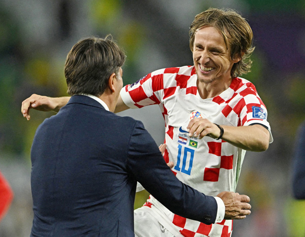 ダリッチ監督に抱きつくモドリッチ(C)ロイター