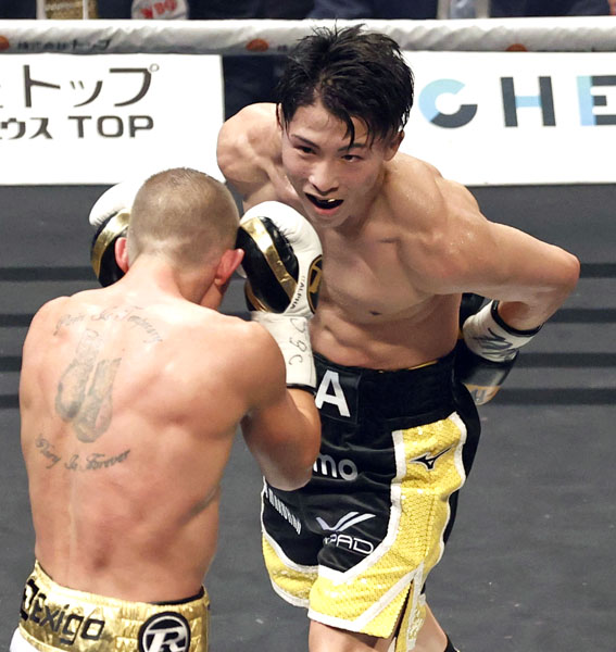 ノーガードでポール・バトラー(手前)を見る井上尚弥(C)共同通信社