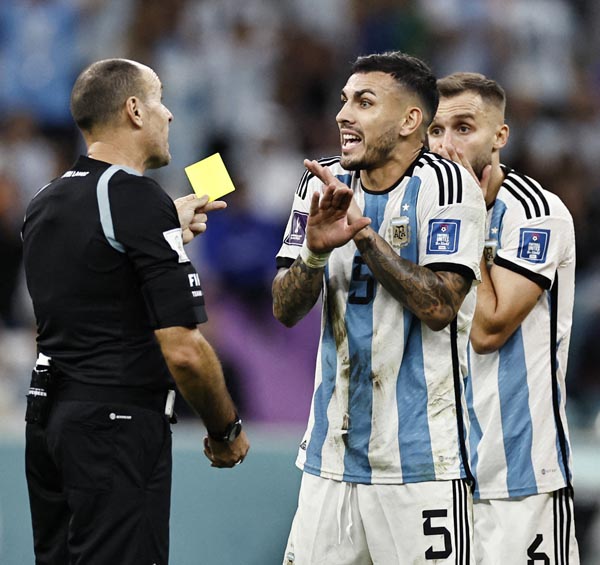 主審に食ってかかるアルゼンチンのパレデス(C)ロイター