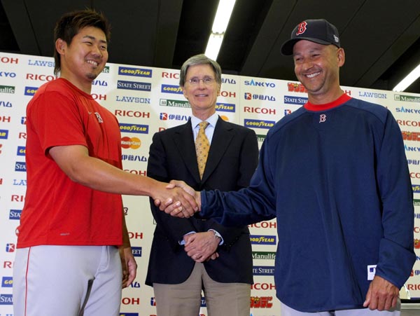 2008年、松坂とともに開幕戦で来日したヘンリー・オーナー(央)/(C)日刊ゲンダイ